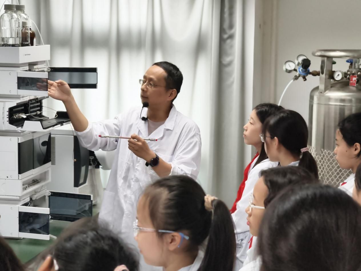 随后,同学们分组探访了四楼的精密仪器平台。高效液相色谱仪、红外光谱仪等“高精尖”设备在奚忠华老师的讲解下,化身“物质侦探”和“分子指纹识别器”,褪去了神秘面纱,变得亲切可感。