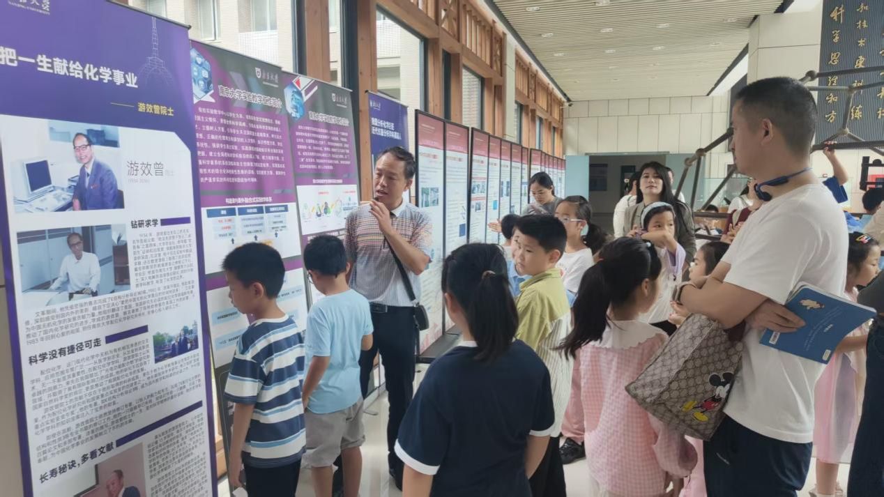 活动伊始,高卫老师在一楼展区带来了一堂生动的“科学家精神启蒙课”。他娓娓道来高济宇、程镕时、江元生、游效曾等院士的科研故事,让孩子们在感人的事迹中感悟“爱国、创新、求实、奉献、协同、育人”的科学家精神。