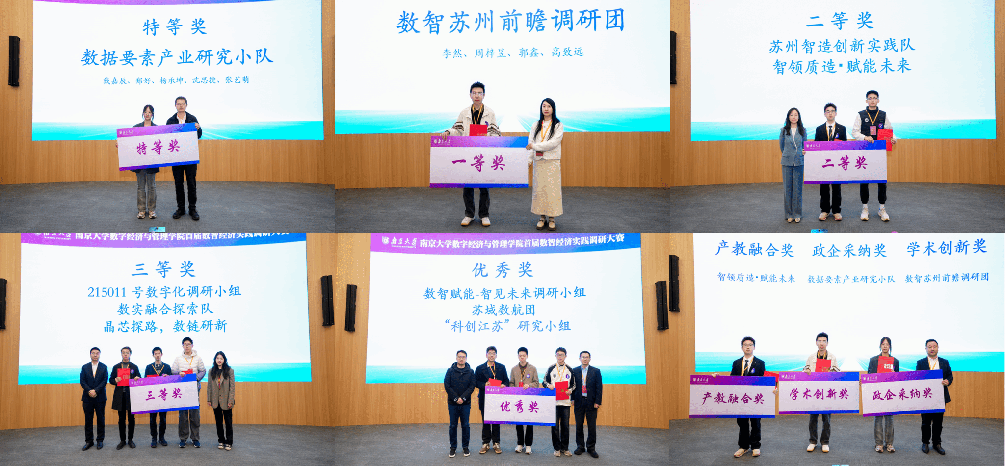 本次首届数智经济实践调研大赛的圆满举办,是南京大学数字经济与管理学院践行以赛促训、以赛促学育人理念的生动实践。大赛不仅为学子们提供了展示自我、交流学习的优质平台,更推动了高校、政府与行业之间的深度联动,为数字经济的人才培养与实践创新奠定了坚实基础。未来,学院将继续以赛事为纽带,深耕数字经济领域的产学研融合,引导更多青年学子走出课堂、扎根实践,用专业知识为区域数字经济发展贡献青春力量!