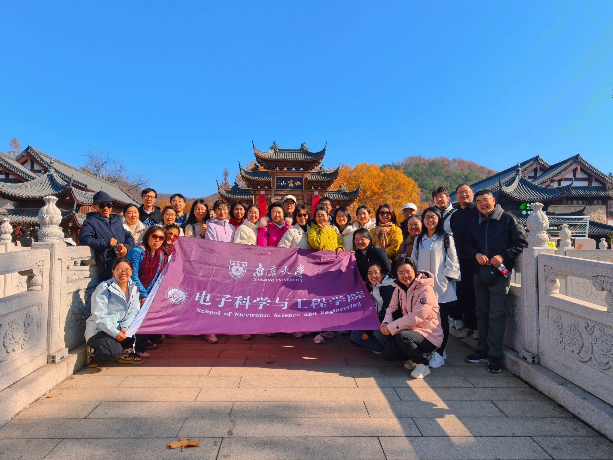 2025年12月3日,南京大学电子科学与工程学院分工会组织工会会员赴栖霞山开展观红叶学习考察活动,活动由学院分工会陈嘉艳老师和王惠老师策划组织。