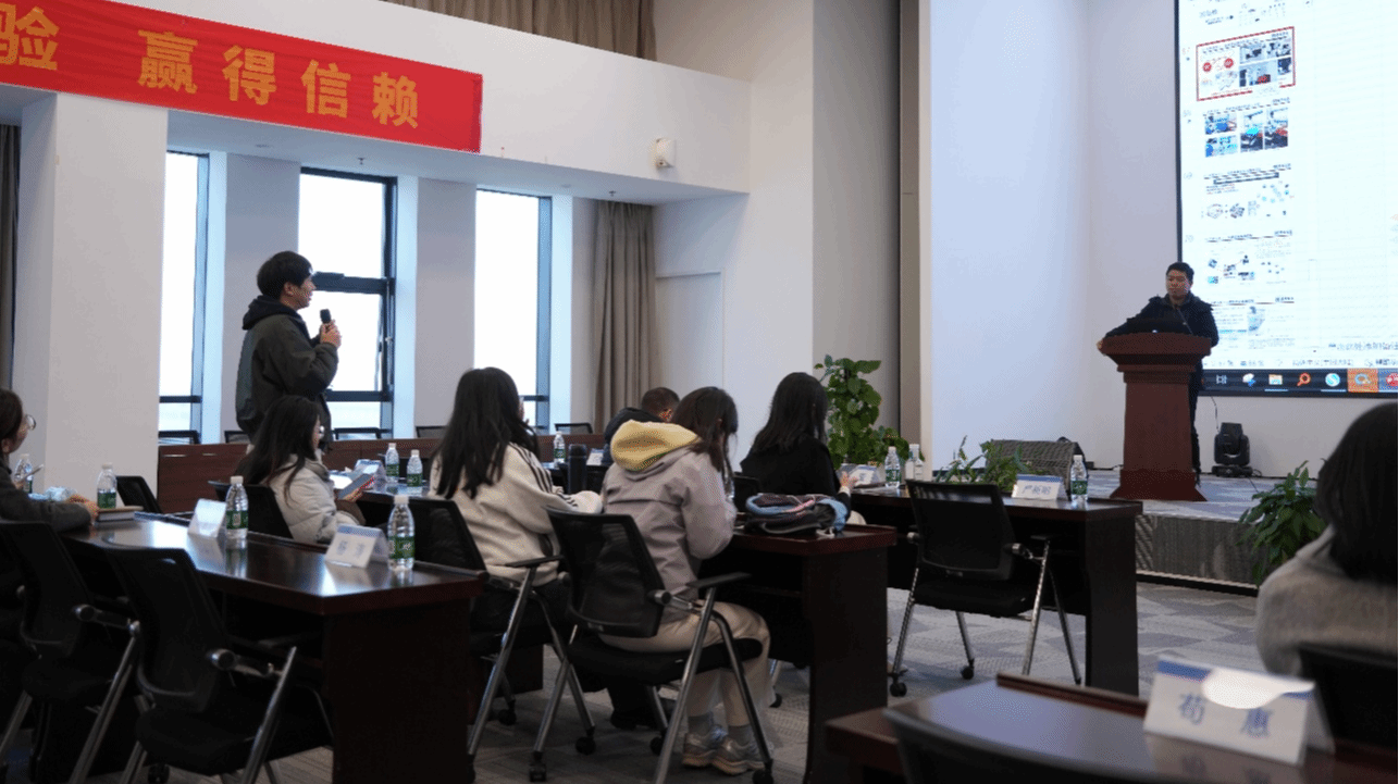 座谈交流环节,研发部总监吕自贵博士围绕具身智能养老机器人关键技术攻关与未来发展趋势作了专题分享。吕博士立足“大健康”与“智慧养老”的发展背景,深入分析了我国养老服务需求结构的演变趋势与养老服务机器人的供给创新路径,重点阐释了具身智能在感知交互、行为决策、人机共融等核心领域的关键技术瓶颈,并对未来技术演进方向与产业布局重点作出了研判。吕博士的报告深刻回应了我国“十四五”时期提出探索人工智能在养老服务领域深度应用的部署,并为“十五五”时期“加强人工智能同民生保障相结合”的时代要求提供了在重点领域的前瞻性技术路径。师生党员们对关于加快发展智慧养老的时代需求有了更强信心,对智能养老服务机器人领域的技术前沿、研发难点和发展方向有了更加全面的认识,智能养老服务机器人不仅是技术创新的重要载体,更是服务老年群体、提升养老服务质量的重要力量。