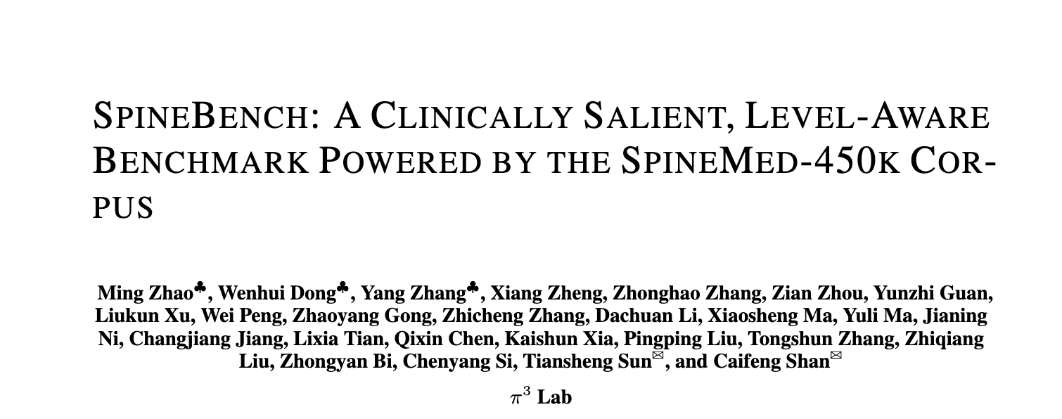 论文标题:SPINEBENCH: A CLINICALLY SALIENT, LEVEL-AWAREBENCHMARK POWERED BY THE SPINEMED-450K COR-PUS