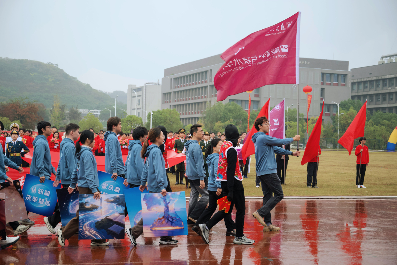 首个比赛日的清晨阴雨绵绵,智科方阵却洋溢着蓬勃朝气,身着统一服装,迈着整齐步伐登场。他们搭乘“智能科学与技术号”列车,驶向“智启南雍,科创报国”的青春征程,以坚定的步履传递学院“顶天立地、自立自强”的精神追求,为本次开幕式注入团结奋进的青春力量。