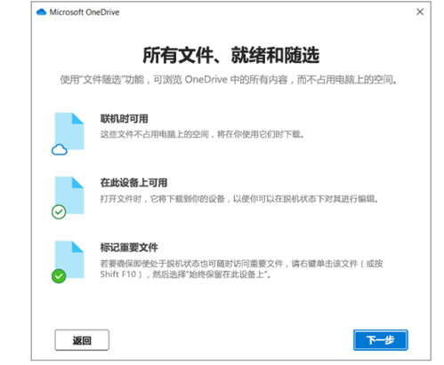 如有需要,可通过:先点文件/文件夹名,再点鼠标右键,选择 “在线查看”、“始终保留在此设备上” 或 “施放空间”来改变文件的状态。