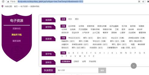 其中“电子资源库”中列出了图书馆购买的各个学科一百多种电子资源: