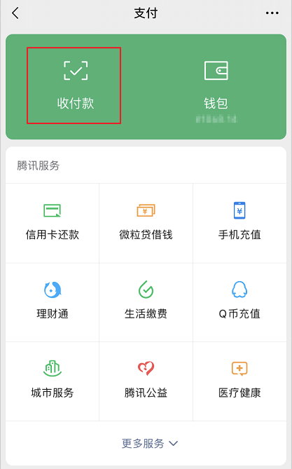 (支付方式二)微信付款码:打开微信—“我”—“支付”—“收付款”,消费时扫描付款码即可。