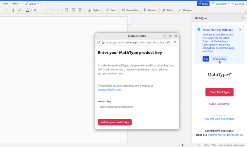 打开MathType插件,选择【激活】,输入产品密钥(校内点击获取)
