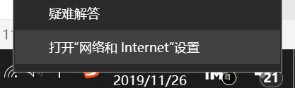 鼠标右击选择“打开网络和internet设置”
