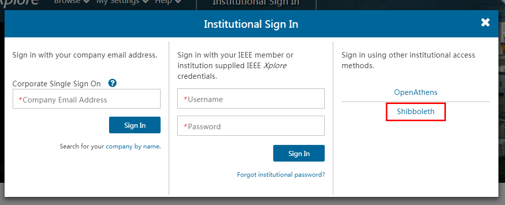 在跳转页面中选择“Shibboleth”