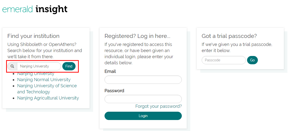 在“Find your institution”中输入“Nanjing University”,点击“Find”,选择搜索结果