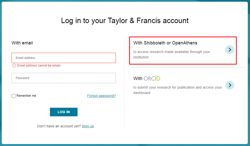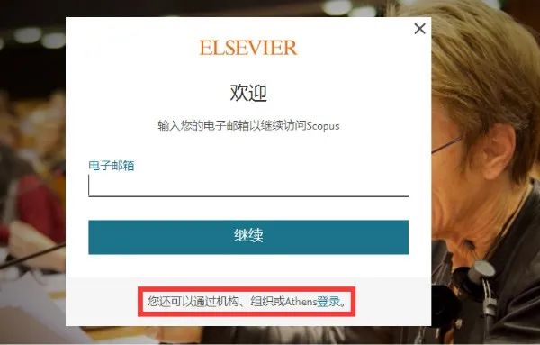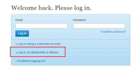 步骤二:点击“Log in via Shibboleth or Athens”。