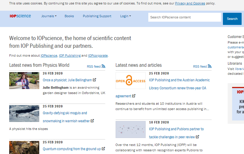 输入IOP Science网址:https://iopscience.iop.org,点击网页中上方“Login”,并在下拉列表中选择“Institution login”