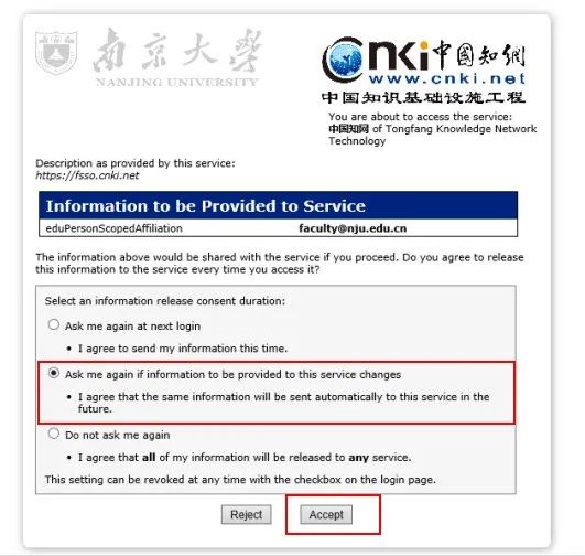 步骤三:点击“accept”按钮跳转到知网主页。