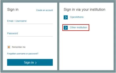 页面将会跳转到“Institutional Login”,之后选择“Login via OpenAthens/Shibboleth”