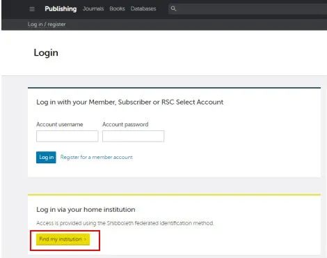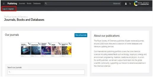 步骤一:输入RSC网址:https://pubs.rsc.org,点击网页左上角的“Log in”。