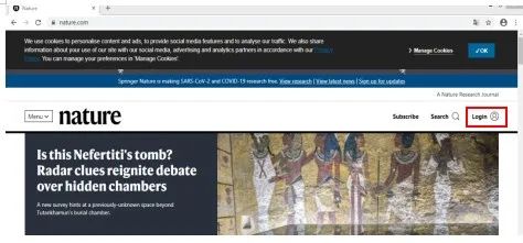步骤一:输入Nature网址:https://www.nature.com,点击右侧的“Login”按钮。