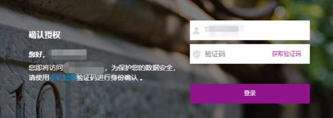 密码认证后,出现以下页面,点击“获取验证码”,将手机收到的验证码填入上面的对话框中,点“登录”即可。