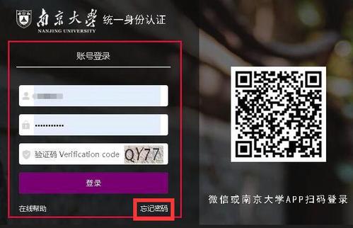 2)电脑端输入网址https://authserver.nju.edu.cn,用南大APP或微信的“扫一扫”登录统一身份认证平台
