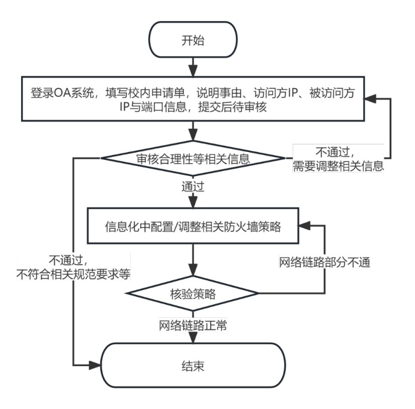 信息化建设管理服务中心按申请要求,配置开通相关策略,并通知、配合申请人验证相关策略。