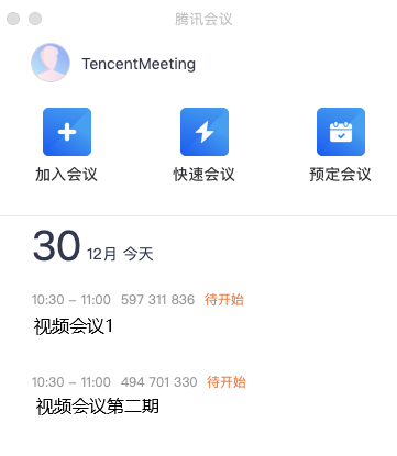 注:快速会议不会在会议列表中展示,当您离开会议后,不能在会议列表找到此会议,但您可以在会议开始一个小时内通过输入会议号加入会议的方式再次回到此会议,当会议持续一小时后,若会议中无人,系统则会主动结束该会议。