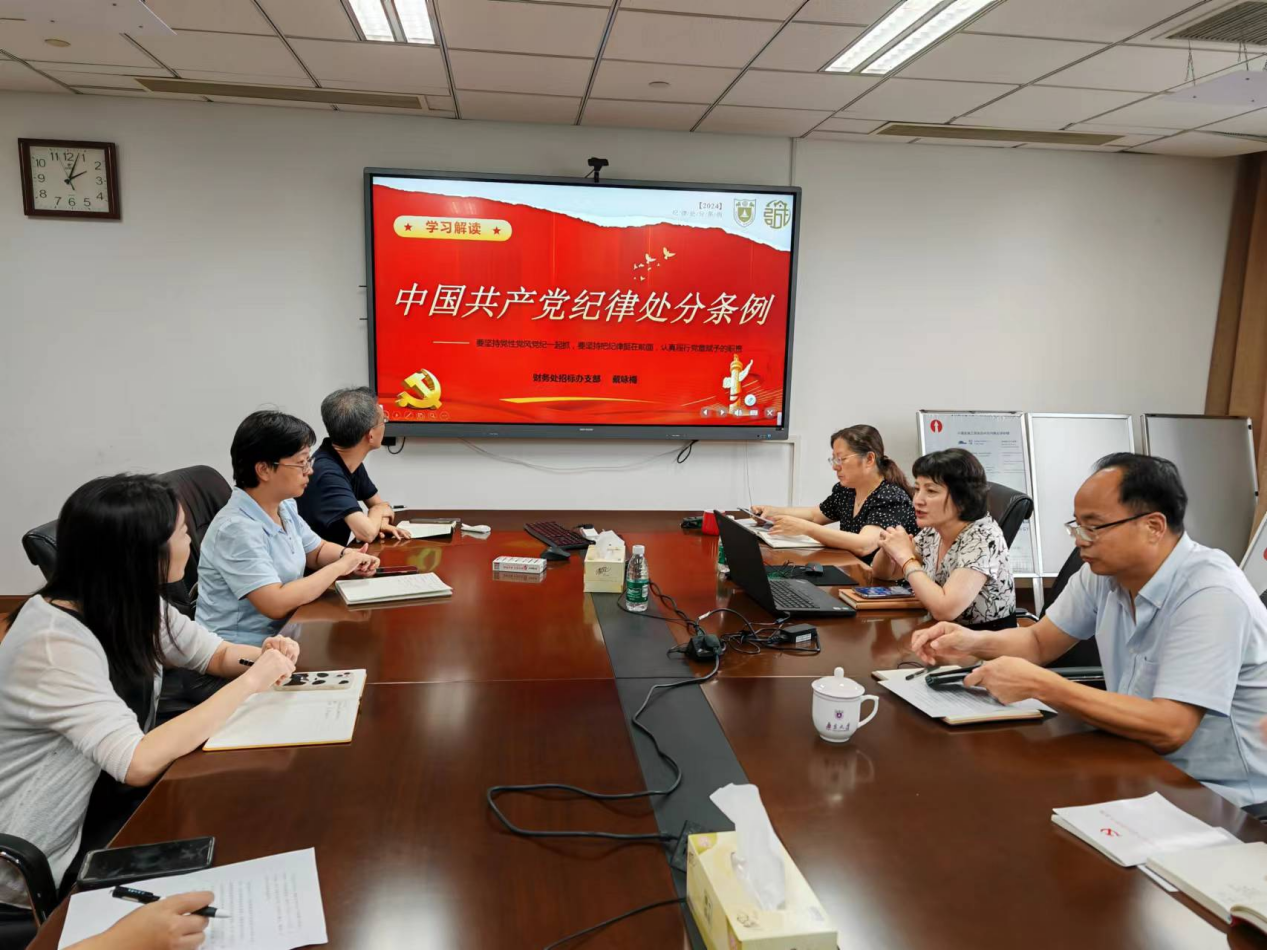 6月26日下午,为推动党纪学习教育走深走实,深入贯彻落实党的教育方针,加强党的纪律建设,提升支部党员同志党性修养,财务处招标办支部开展党纪学习教育主题党日活动。活动以新修订的《中国共产党纪律处分条例》为主要学习内容,通过学习进一步严肃财经纪律意识,提升财务风险防范。财务处招标办党支部书记、财务处处长戴咏梅主持党日活动,机关纪委书记、党委巡视办主任闵建洪作为联系委员参加会议。