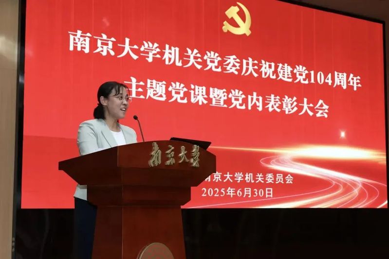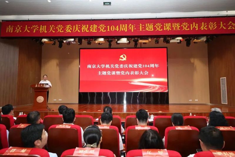 2025年6月30日上午,南京大学机关党委庆祝建党104周年主题党课暨党内表彰大会在仙林校区举行。校党委书记、中国科学院院士谭铁牛为机关党员讲授《坚定理想信念、坚决做到“两个维护”》主题党课。