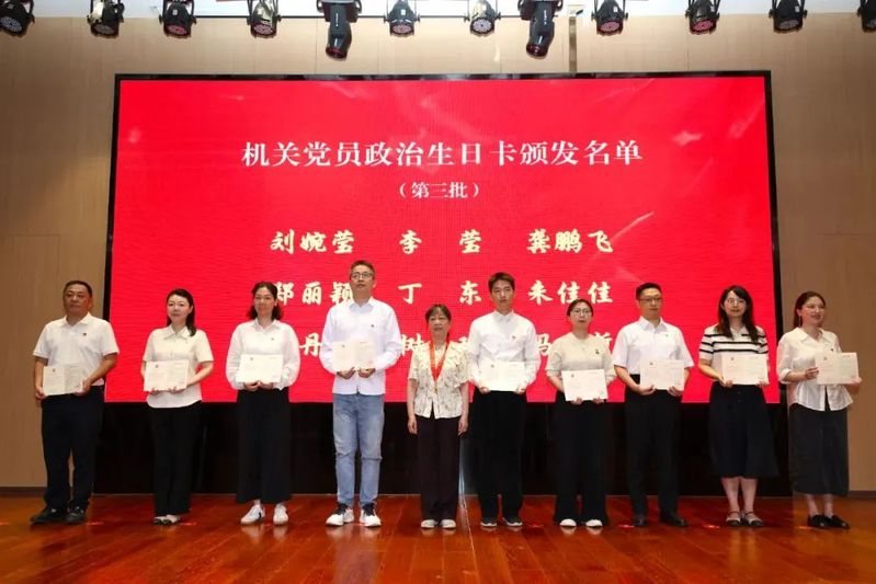 为贯彻中央有关要求,自2020年起,机关党委每年组织入党满五年、十年的党员集体过“政治生日”,引导党员不断强化党员意识。作为获颁“在党50年”纪念章的党员前辈代表,南京大学原副校长闵铁军、原继续教育学院副院长曾红路为今年入党满五年、十年的党员代表颁发“政治生日纪念卡”。