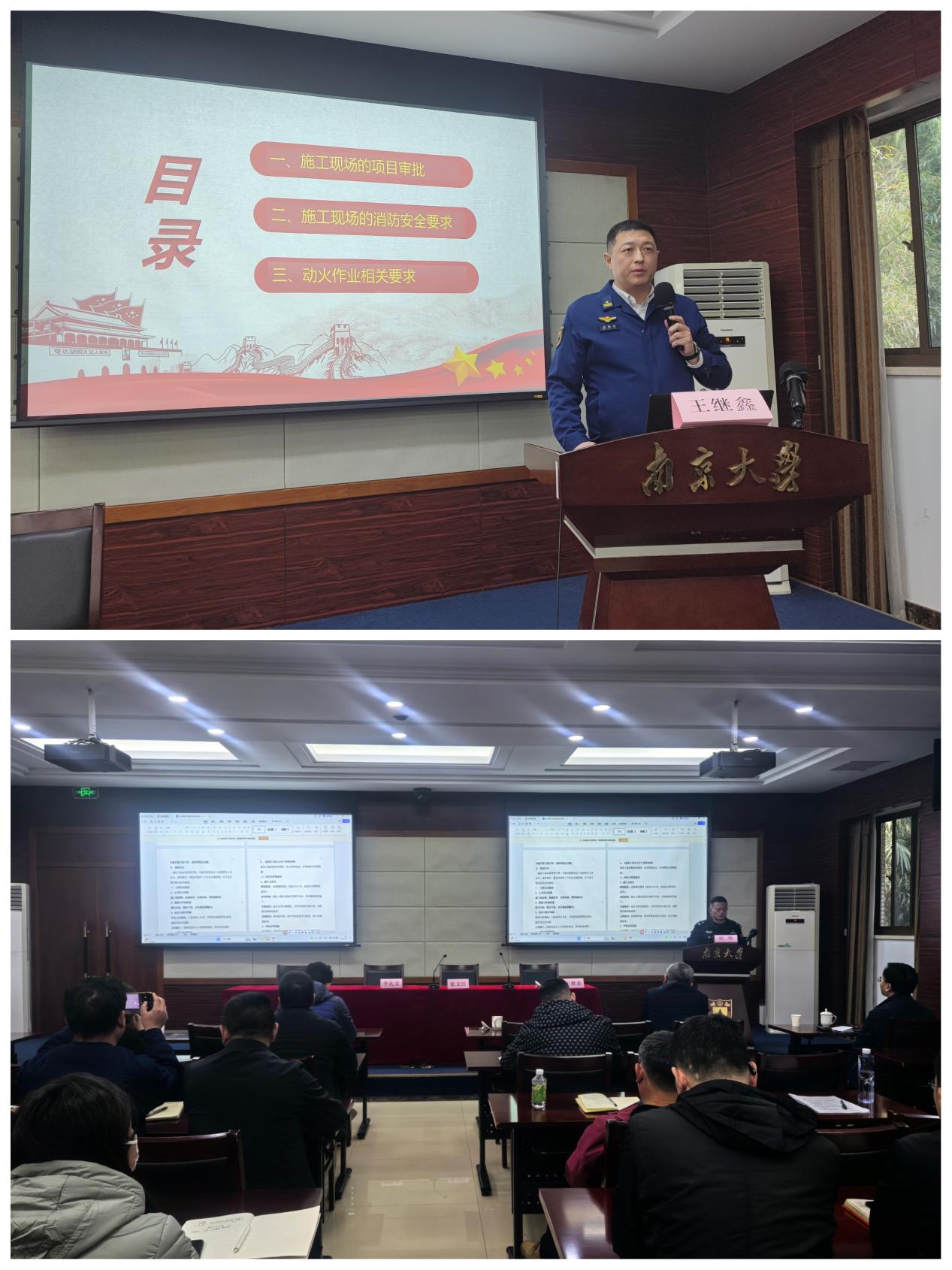 为进一步提升校园建设工程安全水平,筑牢校园安全防线,基本建设处联合保卫处于2025年3月31日下午召开了建设工程安全培训会议。会议特邀南京市消防救援支队监督管理处王继鑫和鼓楼派出所张伟警官分别围绕建设工程消防管理、治安安全管理进行了培训。基本建设处处长李孔文、保卫处副处长张文江、基本建设处副处长范存健、基本建设处副处长杨文娟以及两部处相关工作人员和所有南京校区在建工程施工单位、监理单位项目负责人共计80余人参加了培训会议。