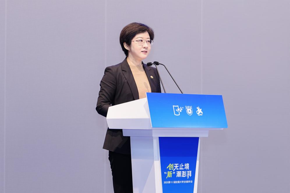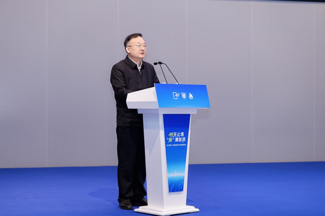 杨树兵回顾了国创计划作为“创新孵化器”对培养学生创新精神的重要作用,并以详实数据展示了江苏在双创教育方面的探索与实践。他寄语同学们珍惜国创年会平台,在交流中碰撞思想、激发灵感,并热情邀请全国学子明年再聚江苏,共襄中国国际大学生创新大赛盛会。