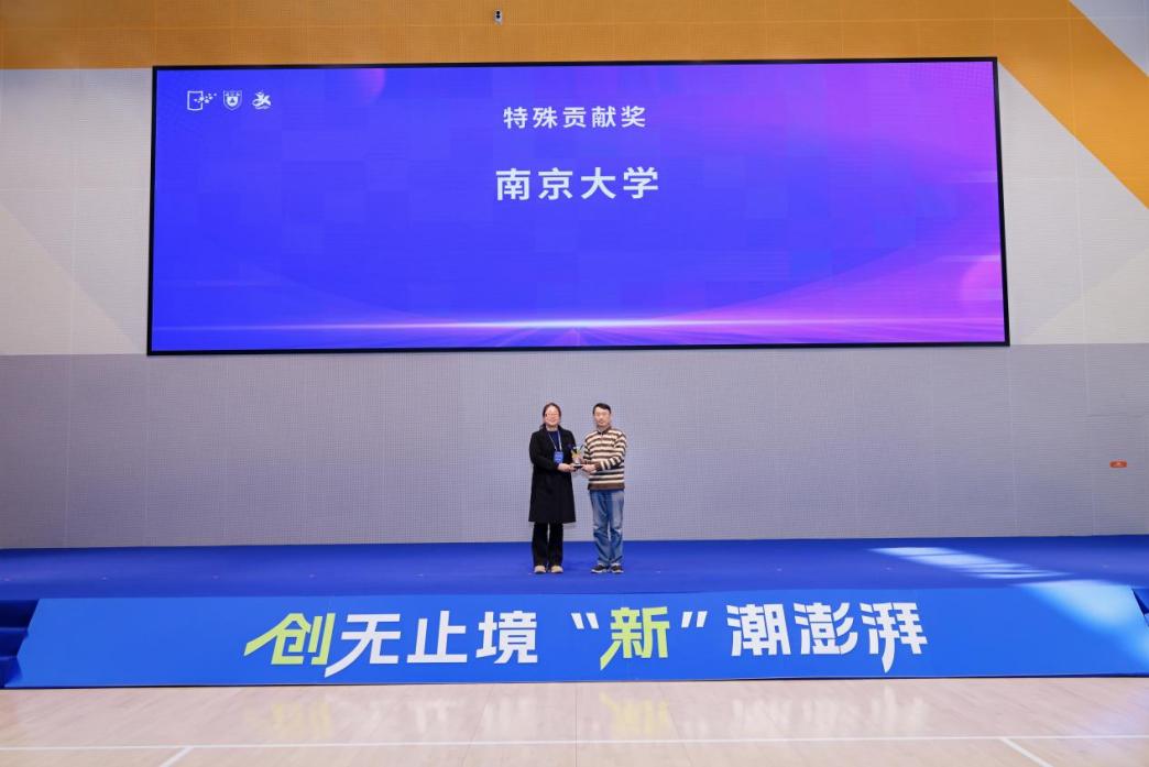 本届年会,我校取得了历史最佳成绩,其中化学化工学院的《碳酸酐酶IX靶向,ALP与近红外光次序激活的奥沙利铂前药诊疗探针》项目获评“最佳创意项目”,软件学院的《对事件驱动的智能家居系统模型的模糊测试方法》论文获评“优秀论文”,以及人工智能学院的《瑾瑜虚像-面向药动/药效推演的虚拟人体大模型》获评“最佳创业项目”并在闭幕式上做路演展示。此外,南京大学被授予“特殊贡献奖”。