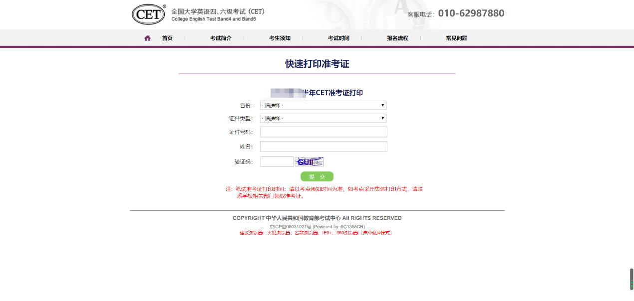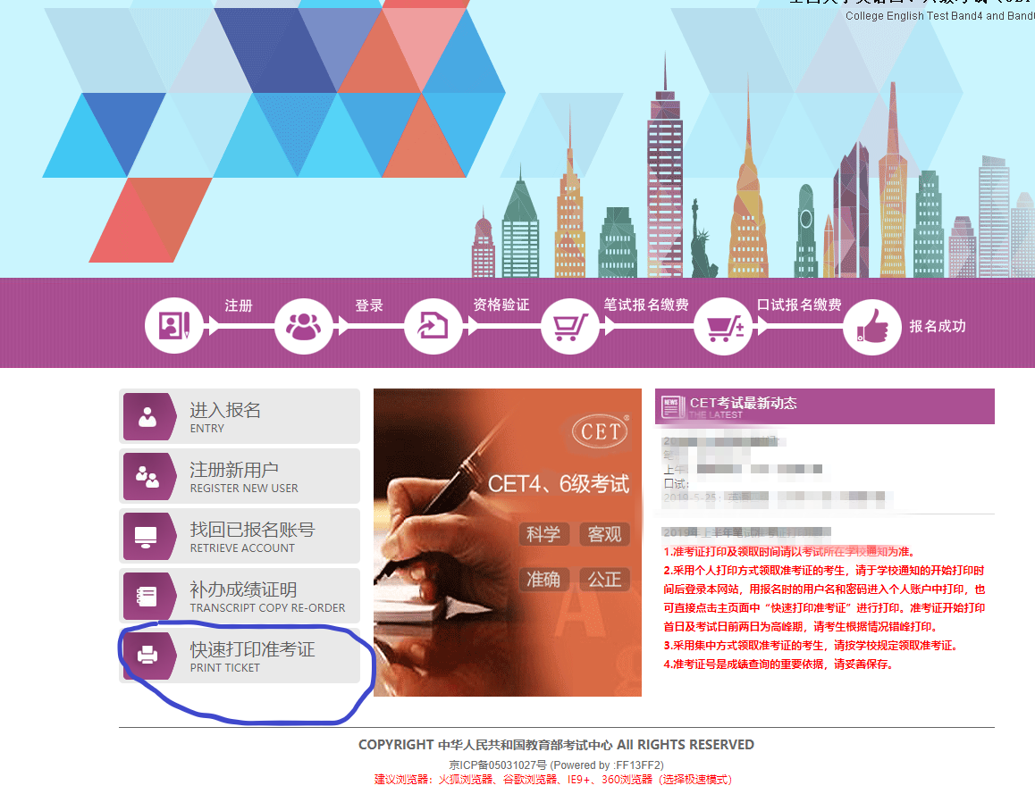 打印网址为报名网址,http://cet-kw.neea.edu.cn/。点击左下角快速打