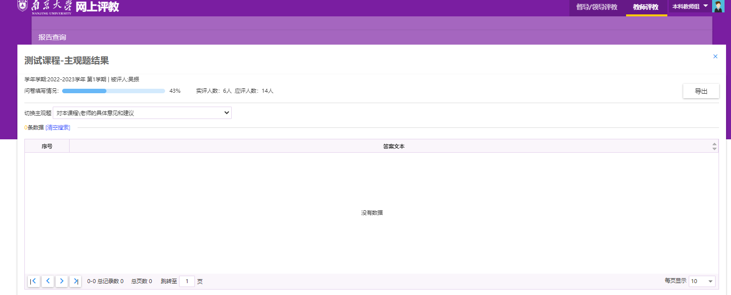 1. 查询学生评教结果:在上方菜单栏“学生评教结果查询”中查询。