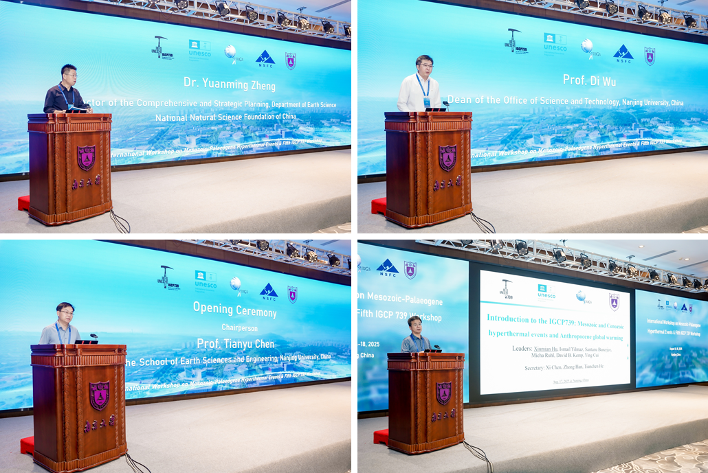 2025年8月16-18日,"国际中生代-古近纪极热事件学术研讨会暨第五次IGCP739学术年会"在南京大学仙林校区国际会议中心成功举行。本次会议由IUGS/UNESCO IGCP 739项目、国家自然科学基金基础科学中心项目“大陆演化与季风系统演变”、国家重点研发项目“地球深时大洋缺氧事件与环境演变”共同发起,由关键地球物质循环与成矿全国重点实验室(南京大学)、南京大学地球科学与工程学院、教育部关键地球物质循环前沿科学中心(南京大学)共同承办,胡修棉教授任组织委员会主席。会议旨在通过搭建跨学科国际交流平台,推动极热事件研究的学术合作与共识构建,深入理解地球系统演化,应对全球变化。