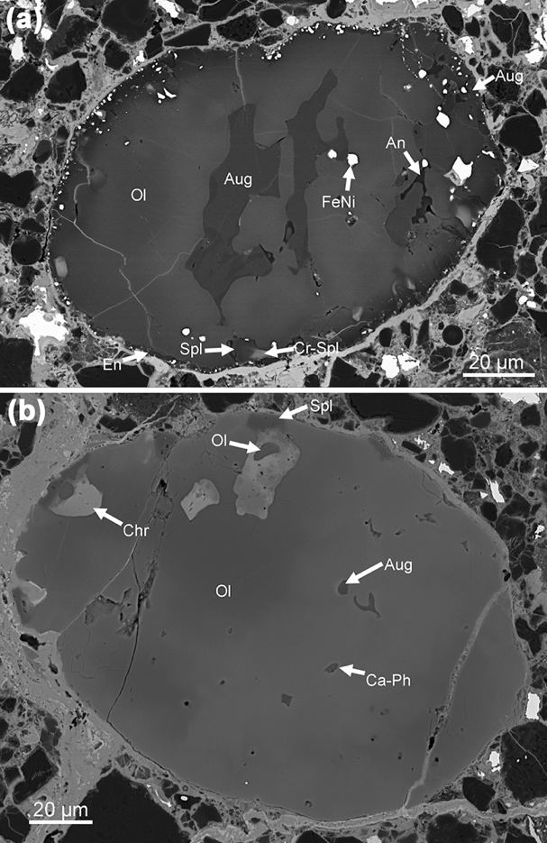 图1、SaU 290陨石中两个似Angrite的岩屑背散射电子像