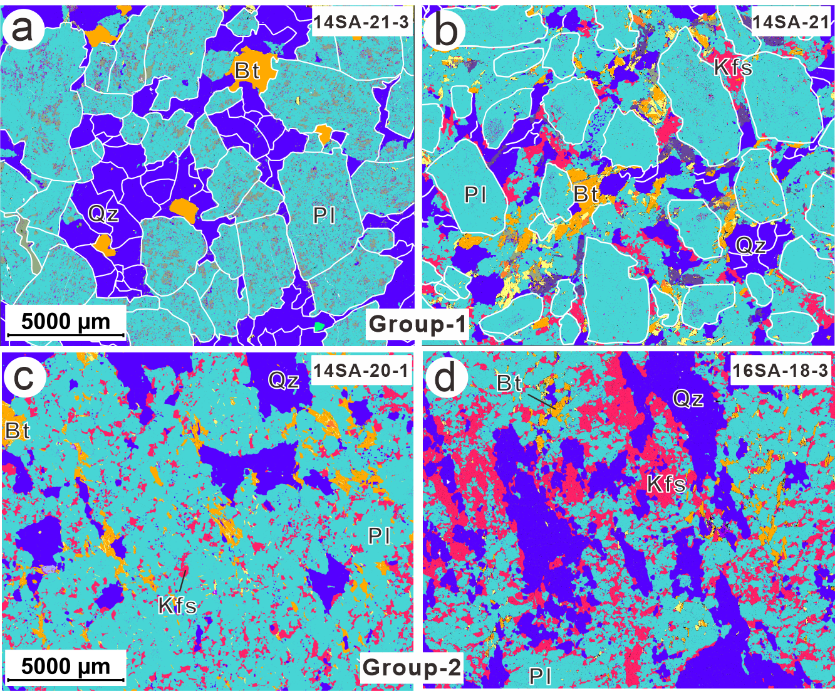 Qz-石英;Bt-黑云母;Pl-斜长石;Kf-钾长石。