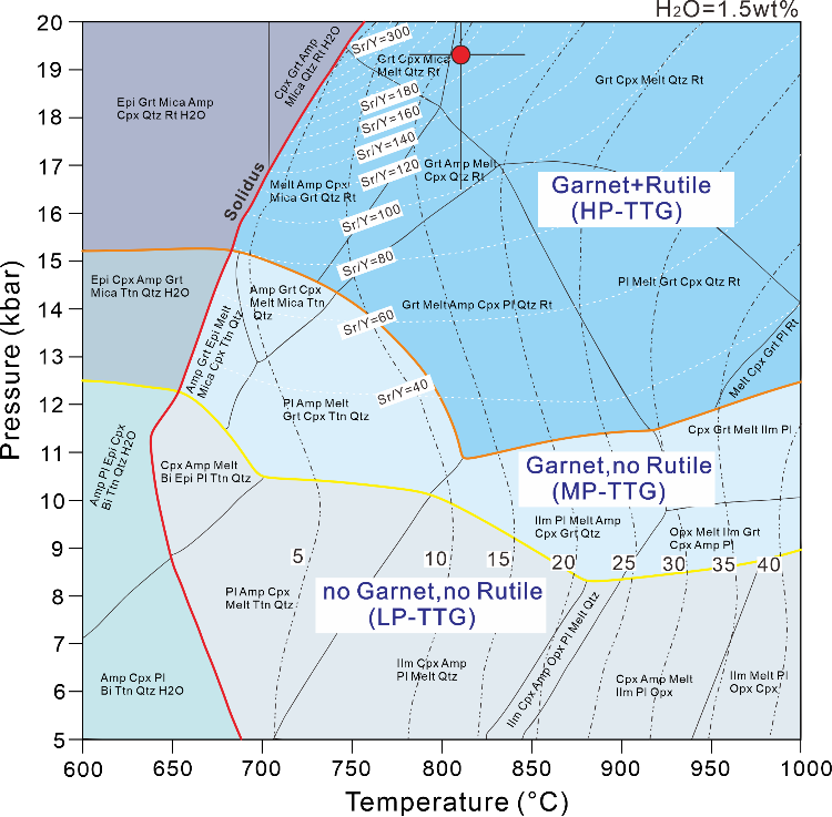 图2相平衡模拟限定研究区TTG岩石的形成温度-压力范围