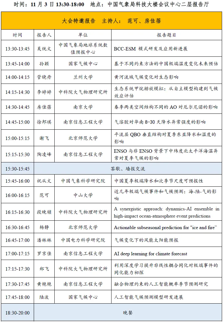 地点:11月3日中国气象局科技大楼会议中心二层报告厅