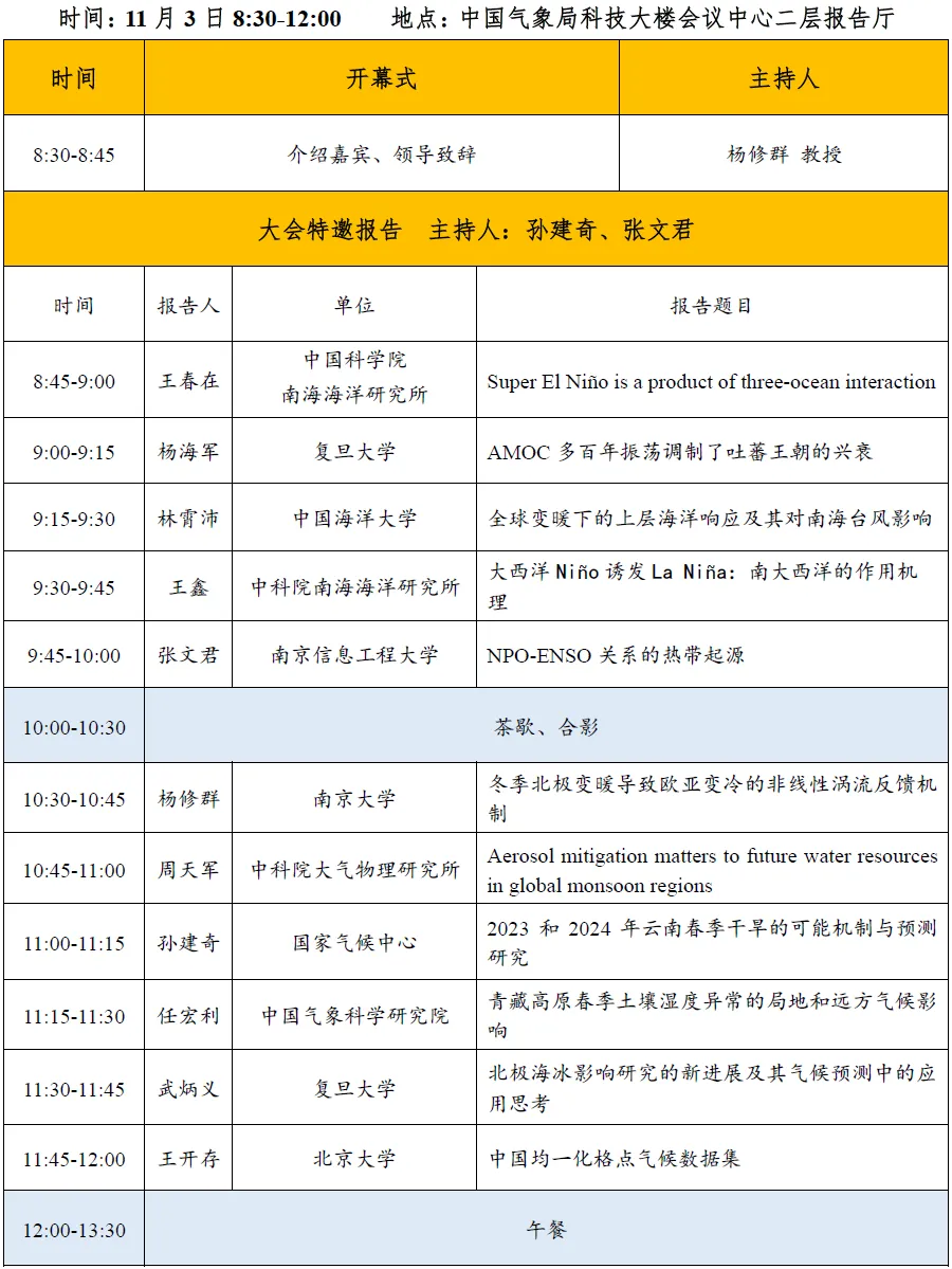 11月3日8:00-10:00中国气象局科技大楼会议中心二层报告厅