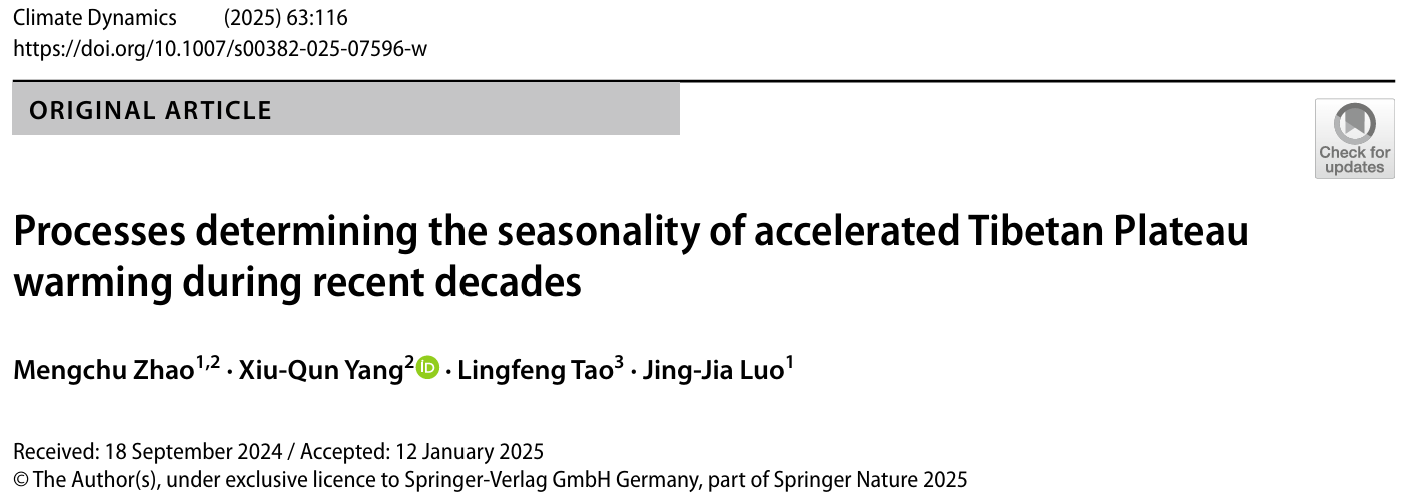 Zhao, M., Yang, X-Q., Tao, L.et al.Processes determining the seasonality of accelerated Tibetan Plateau warming during recent decades.Climate Dynamics,63, 116 (2025). https://doi.org/10.1007/s00382-025-07596-w
