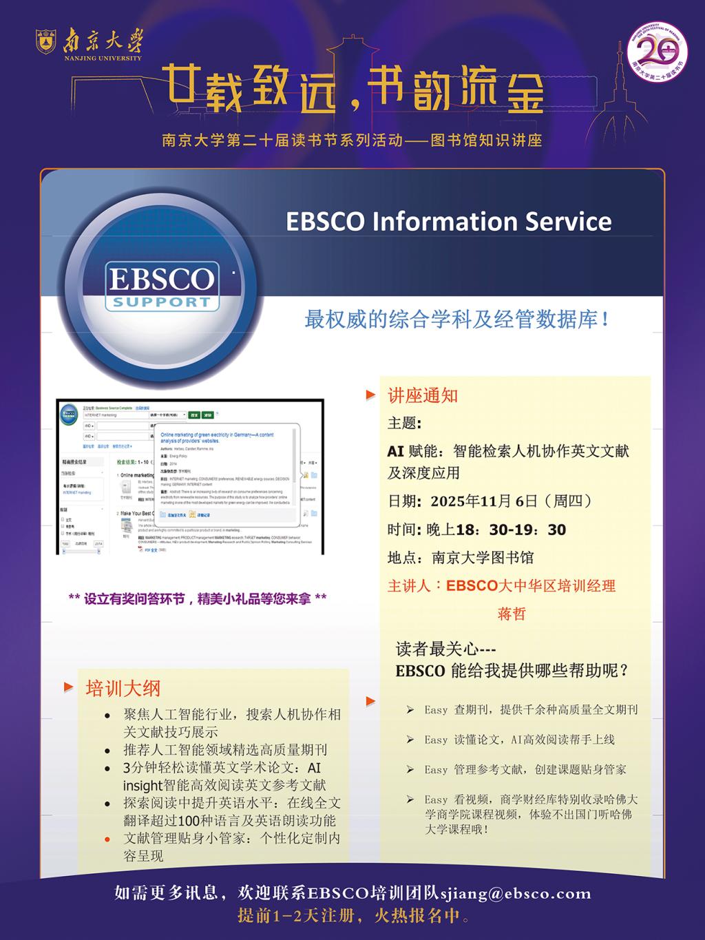 【讲座信息】11月6日图书馆知识讲座之智能检索人机协作英文文献及深度应用