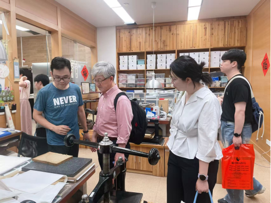 代表团专程考察了古籍特藏部及古籍修复室,全面了解了南京大学图书馆在中华优秀传统文化保护,尤其是古籍典藏、古籍保护与修复以及劳育教学、科普等方面的主要做法,交流了传统修复技艺与现代科学技术相融合的雕版刻制技术。双方还就古籍数字化保护、文献修复技术等专业议题进行了技术交流与经验分享。