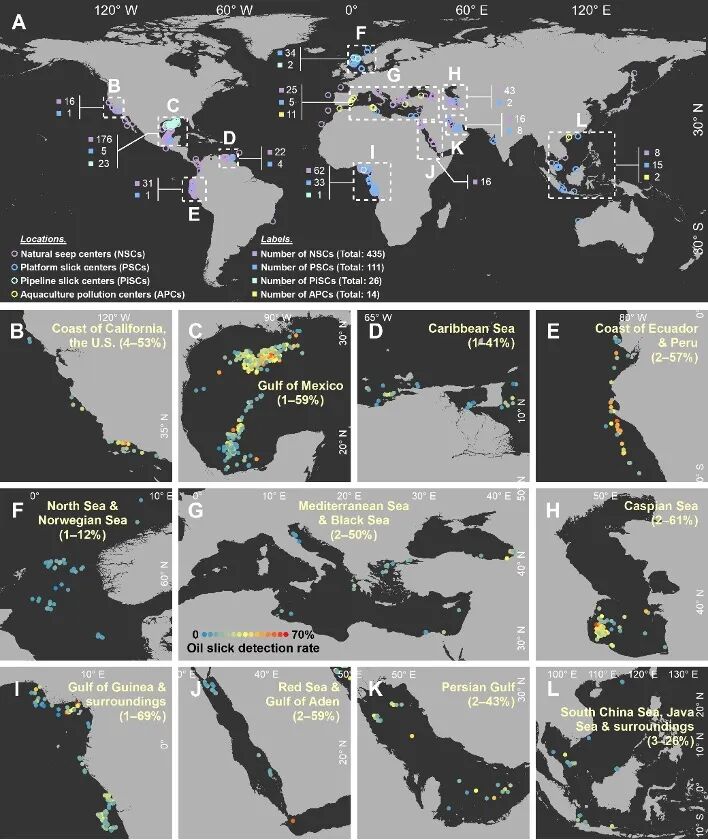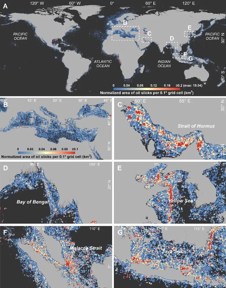 南京大学地理与海洋科学学院刘永学教授课题组在全球海面油膜遥感监测方面取得重要进展。该研究利用遥感大数据,首次勾绘了全球海面油膜的空间分布,构建了迄今为止最为全面、位置明晰的海面油膜持续固定排放源清单,确定了不同来源海面油膜的贡献比例,从而改善了对海面油膜来源的结构性认知。