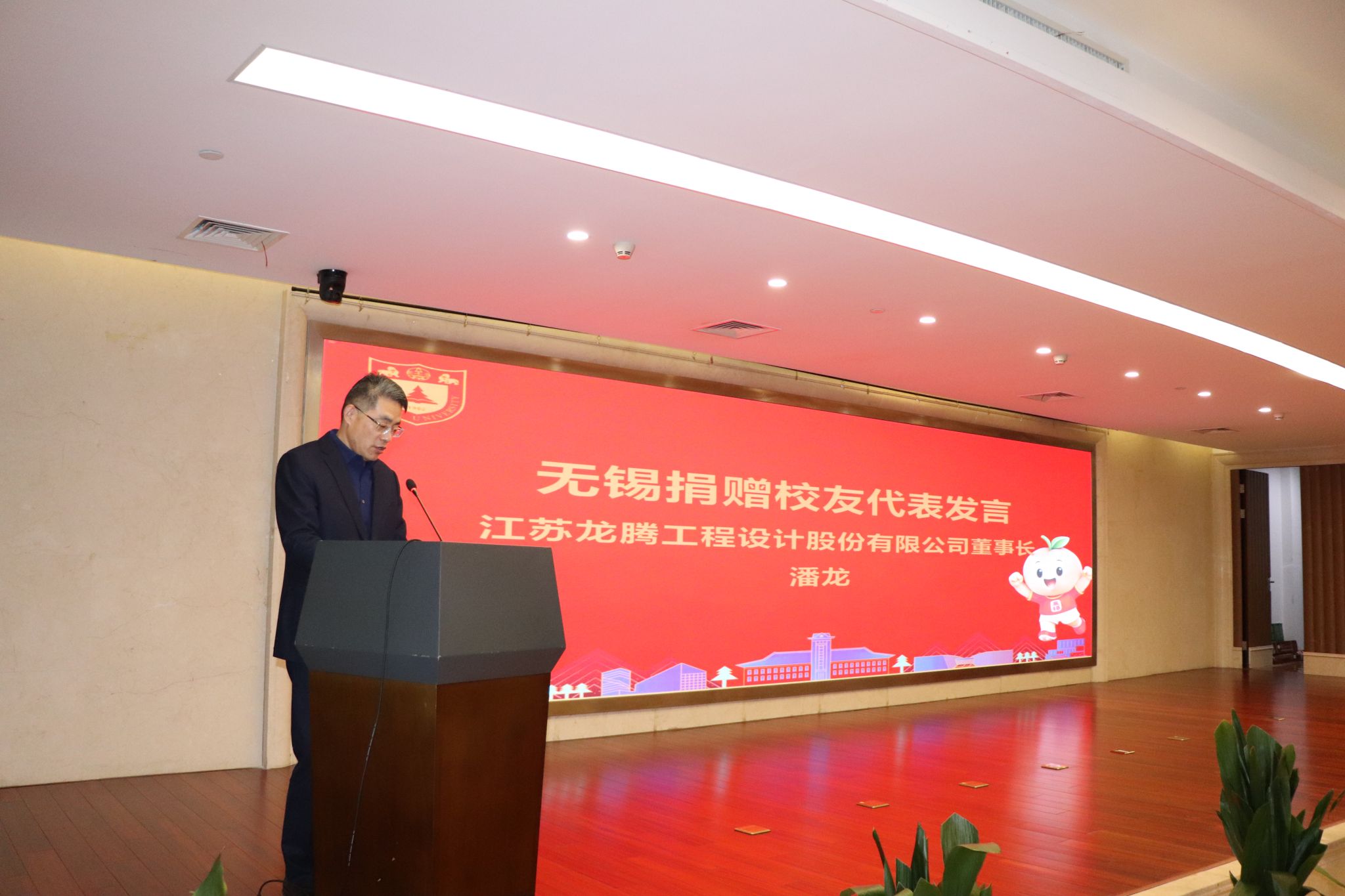 捐赠校友代表、江苏龙腾工程设计股份有限公司董事长潘龙表示,“嚼得菜根、做得大事”的处事准则已深深融入一代代南大人的血脉,成为大家投身公益、服务社会的精神源头。他愿这份涓滴善举,成为照亮受赠学子人生之路的希望之光,成为推动母校持续发展进步积极而温暖的一份微薄力量。