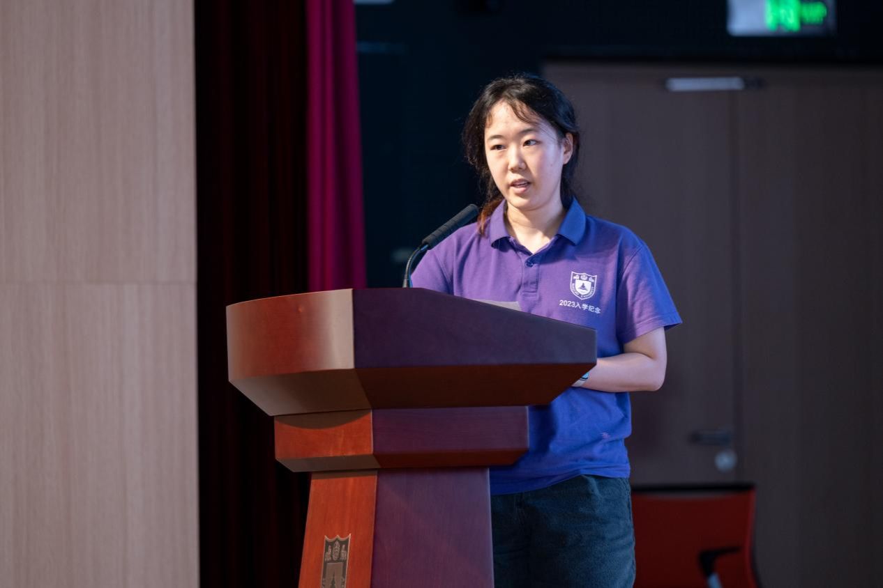 典礼上,新生代表的发言则洋溢着青春的思考与锐气。南赫学院本科生代表张嘉雯从今夏极端天气的切身感受谈起,坦言选择大气科学源于一份 “想去理解它、研究它,更想去预测、改变它” 的朴素冲动,她呼唤同学们以严谨的学术选择和日常的环保行动,共同承担“南赫人”的时代重任。研究生新生孙书恒则表达了“立德为先、励学为本、力行为要”的学术志向,他立志发扬"团结奋斗、争先进位、坐言起行、应势而动"的精神,在科研道路上追求卓越,在学术探索中勇攀高峰,为应对气候变化等全球性挑战提出南赫方案。