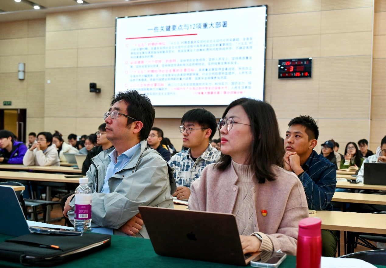 讲座最后,沈坤荣教授总结道,推动高质量发展、实现中国式现代化,关键在于以高水平开放促进深层次改革,保持战略定力、积极应对变局、开拓新局。此次讲座为师生深入理解“十五五”发展规划、把握国家经济发展脉络提供了重要指引,也为博士生将学术研究与国家战略相结合搭建了桥梁。
