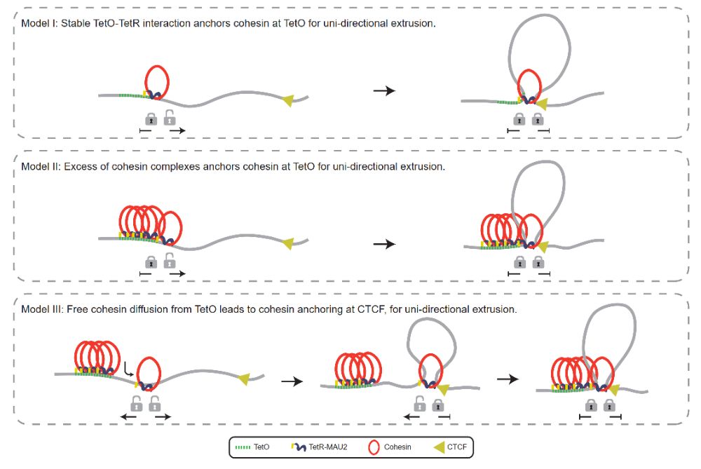 与传统研究方法相比,该系统利用经典的TetO/TetR系统的“开关”机制,将能与DNA特异结合的TetR蛋白与帮助黏连蛋白装载的MAU2蛋白融合,创建了TetR-FLAG-MAU2融合蛋白。同时,通过PiggyBac转座子系统将含有TetR结合位点的TetO平台插入到细胞的基因组中。