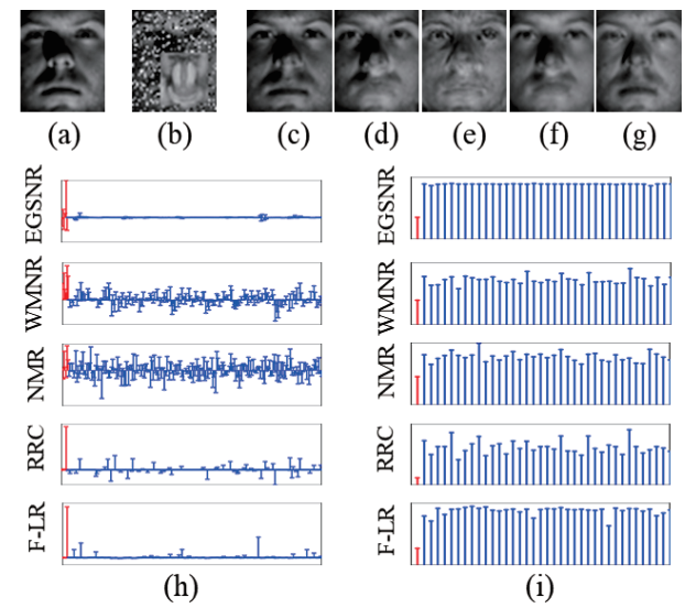 机器学习与数据挖掘是人工智能研究的核心领域之一。在机器学习与数据挖掘研究中,原始数据通常蕴含复杂噪声,为从观测数据中恢复出真实数据,须对噪声信息进行准确建模,研究鲁棒模式分析方法。如何准确建模数据噪声并建立鲁棒模式分析方法是重要且具挑战性的问题。李华雄和陈春林团队从噪声信息的低秩与稀疏结构精准刻划角度开展研究,通过引入非凸函数建立混合范数以提升传统L1与核范数度量性能,更为精准地描述噪声信息的低秩与稀疏结构。同时结合距离先验信息,构建具有判别性的监督回归系数正则项,采用交替方向乘子法(ADMM)设计优化模型的快速求解算法。该方法在鲁棒人脸识别等任务中,获得了同等实验条件下多种经典方法对比的最优性能,在模式分析、噪声数据处理、影像分析、安防监控等领域有着广泛的应用前景。