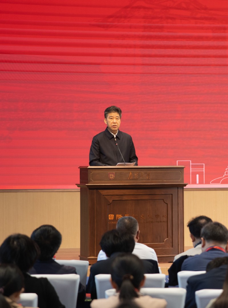 11月15日,江苏省社科界第十九届学术大会经济学与管理学专场主会在南京大学苏州校区隆重举行。本次大会由中共江苏省委宣传部、江苏省哲学社会科学界联合会主办,南京大学数字经济与管理学院承办,南京大学习近平经济思想研究院协办,以“担当经济大省挑大梁责任 更好为全国发展大局做贡献”为主题,主会围绕“推动科技创新与产业创新深度融合”核心议题展开深入研讨,为中国式现代化江苏新实践注入智力动能。南京大学原党委书记、人文社科资深教授洪银兴,江苏省社科联主席曲福田,江苏省委宣传部副部长、省政府新闻办主任赵金松,凤凰出版传媒集团党委书记、董事长章朝阳,南京大学党委原常务副书记、习近平经济思想研究院院长杨忠,南京大学党委常委、副校长索文斌等参加活动。