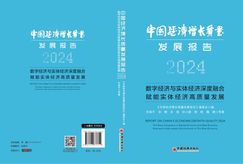 由教育部长江学者数字经济与管理学院任保平教授作为首席专家,任保平、师博、巫强和魏婕等组成中国经济增长质量研究团队撰写完成的《中国经济增长质量发展报告2024——数字经济与实体经济深度融合赋能实体经济高质量发展》,在中国经济出版社出版。本报告是中国经济增长质量系列报告的第16本,是教育部发展报告项目的重要成果,也是南京大学数字经济与管理学院和南京大学江苏数字经济研究院年度报告。本报告由3篇、25章构成,全书46.8万字。