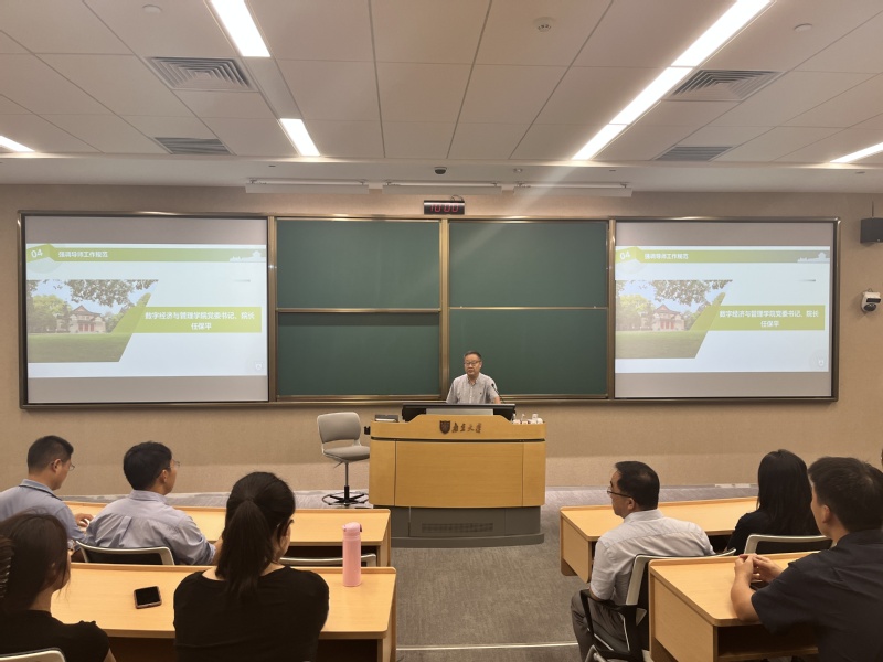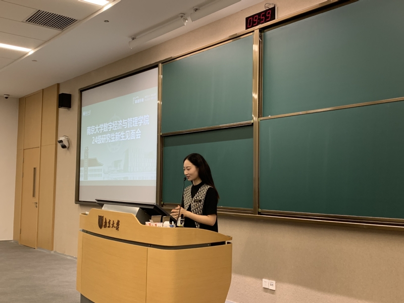 2024年9月12日上午,南京大学数字经济与管理学院在南雍楼西122教室举行了2024级研究生新生见面会。会议由研究生辅导员吴嘉宝老师主持。学院各领导、老师出席见面会,与各位研究生新生亲切交谈,寄予各位研究生新生殷切希望。